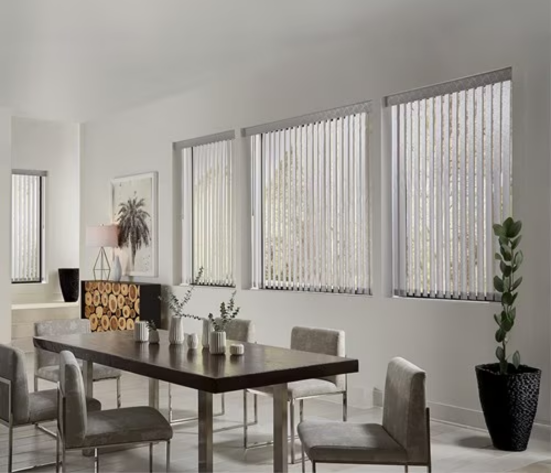 Vertical blinds are low maintenance. Dust regularly, vacuum fabric blinds, and use a soft cloth with mild detergent for minor stains.